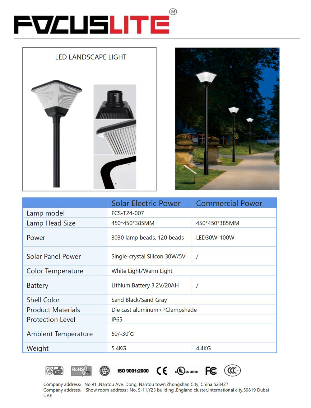 Product Materials | Die cast aluminum+PClampshade | ||